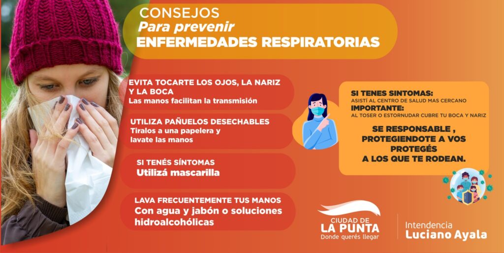 Con la llegada de las bajas temperaturas, es fundamental que redoblemos los cuidados para proteger nuestra salud respiratoria y la de nuestros seres queridos. Desde la Municipalidad, queremos acercarte algunos consejos claves (los que están en la imagen) para prevenir las enfermedades invernales más comunes.