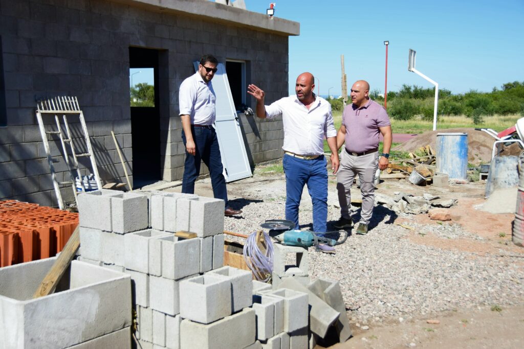 Una de las obras que visitó fue la ampliación del SUM ubicado en el Barrio 900 Viviendas. Este proyecto contempla una ampliación de 52 metros cuadrados, cubierta de losa con altura interior de 2,70 metros, y la incorporación de sistemas de ventilación e iluminación para garantizar un ambiente agradable.