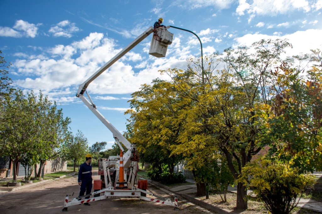 En el marco del programa provincial Construyendo con tu Pueblo III, el Municipio continúa con la ejecución del plan de modernización del alumbrado público. Esta etapa contempla el recambio de 1.860 luminarias por tecnología LED de última generación, una iniciativa clave para alcanzar el objetivo histórico de cubrir el mayor porcentaje del ejido urbano con iluminación eficiente y de bajo consumo.